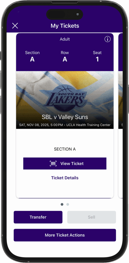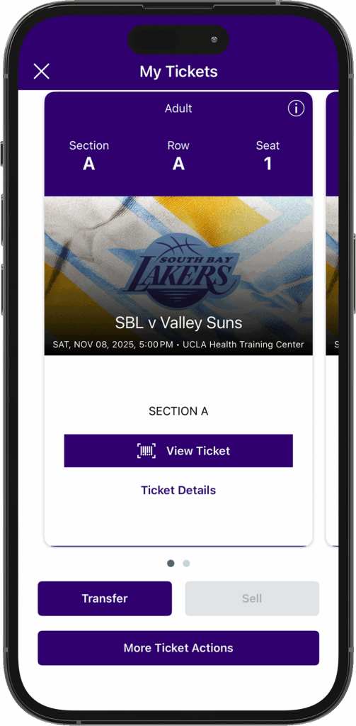Check out the guide below for instructions on how to access your mobile tickets and scan into UCLA Health Training Center on gameday and to manage your tickets through the South Bay Lakers Mobile App or Account Manager online.
