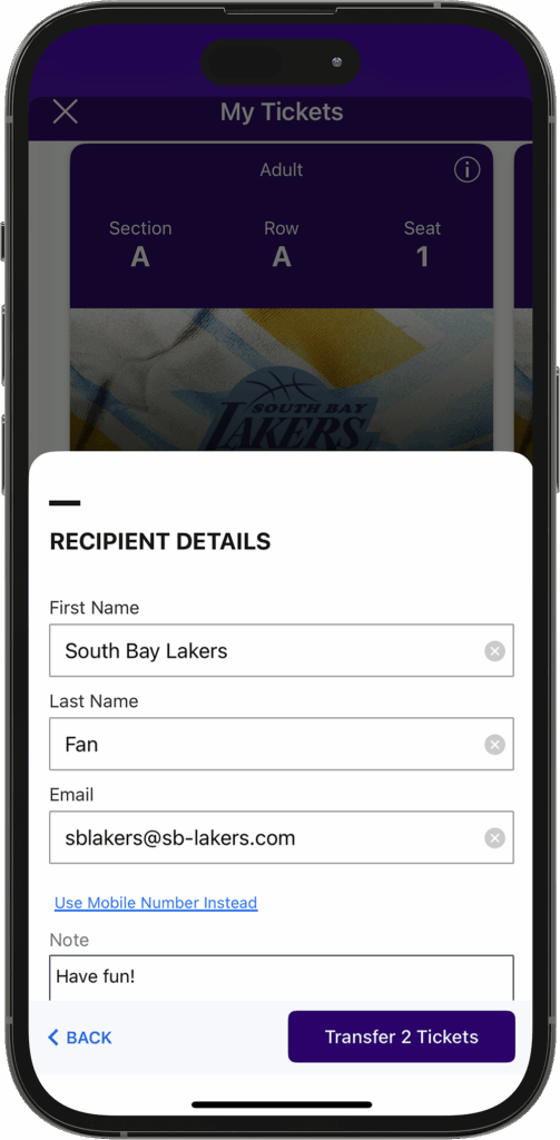 Quickly access and send tickets directly from the South Bay Lakers Mobile App.