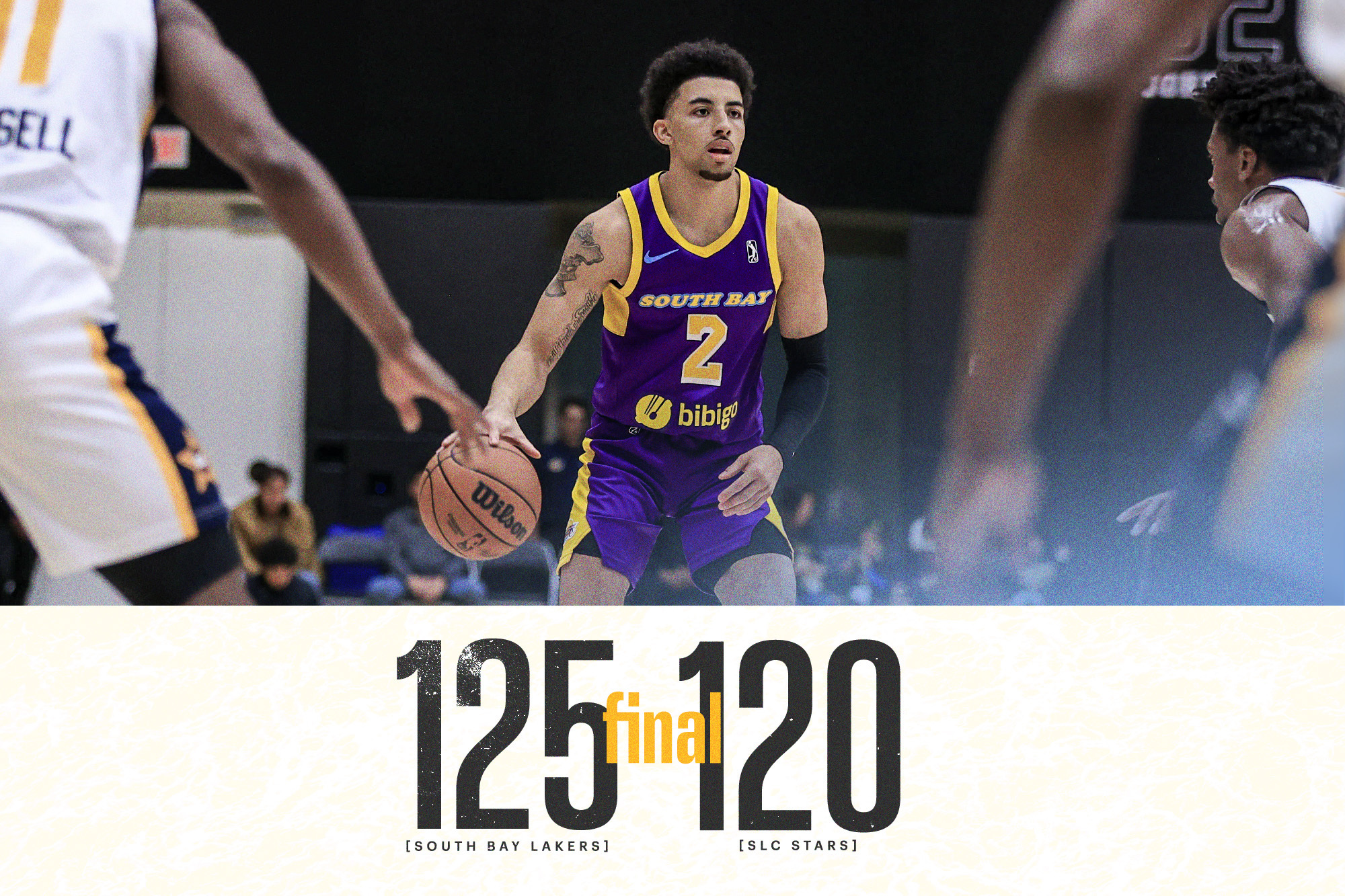 The South Bay Lakers played their ninth game of the season against the Salt Lake City Stars as they won, 125-120, on Tuesday night. Scotty Pippen Jr. led the Lakers (6-3) in scoring with 35 points. Tyler Cook paced the Stars (4-6), scoring 32 points.